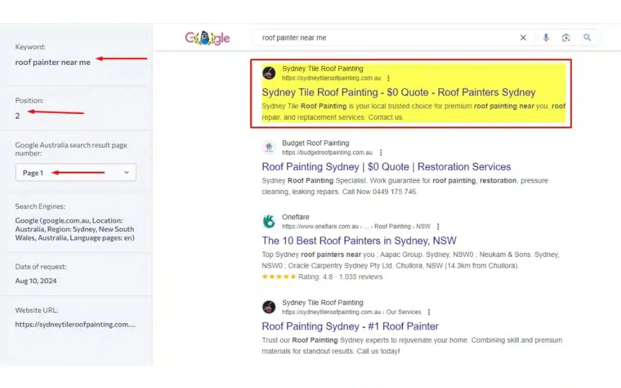 Our SEO approach for Sydney Tile Roof Painting was multifaceted, focusing on these key areas: